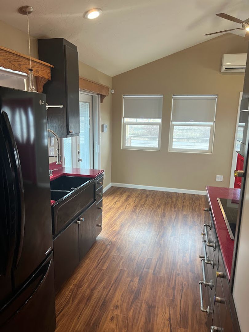 Cozy 1-bedroom, 1-bath home in Kuna, ID featuring convenient in-unit washer and dryer, full refrigerator, microwave, and stove top. Comfort is provided by a mini-split unit, and outdoor space includes both a front deck and a side decks. Off-street parking is available for residents. Enjoy the low maintenance yard care with rock and sand landscaping. Offering a short-term leases only. Month to Month basis.